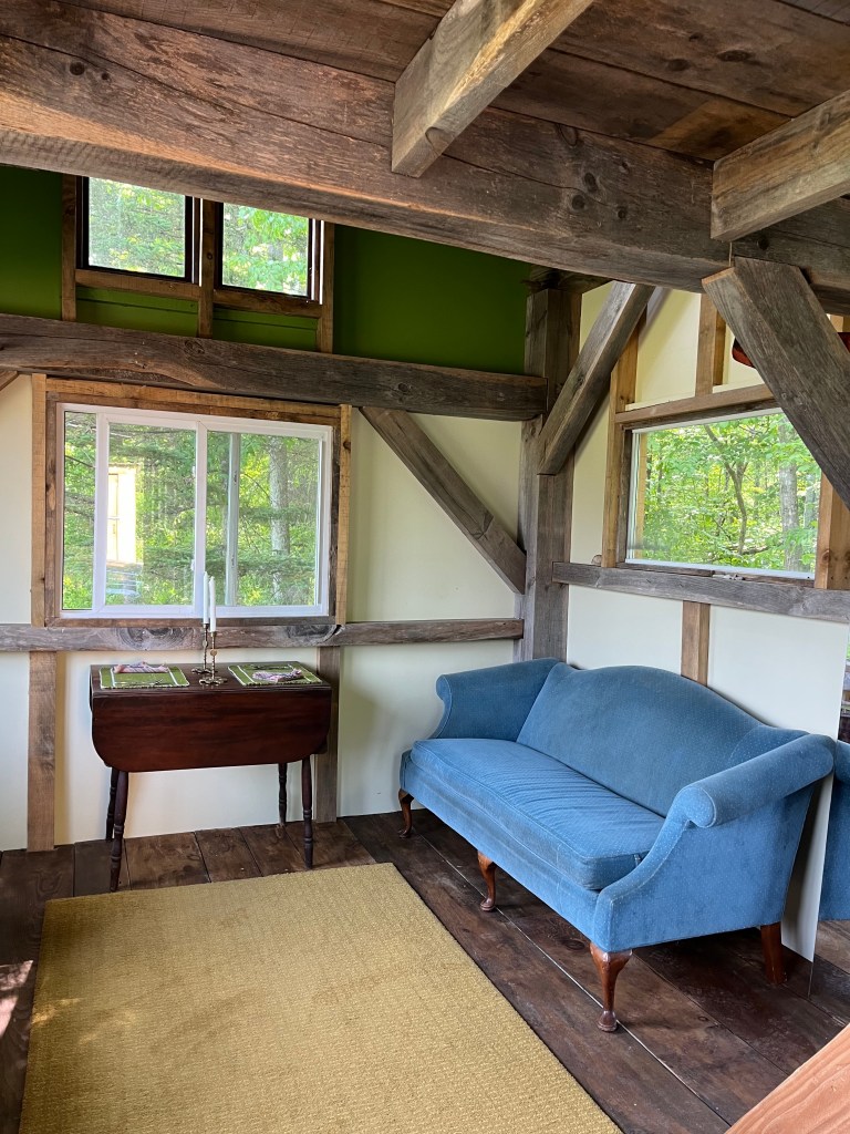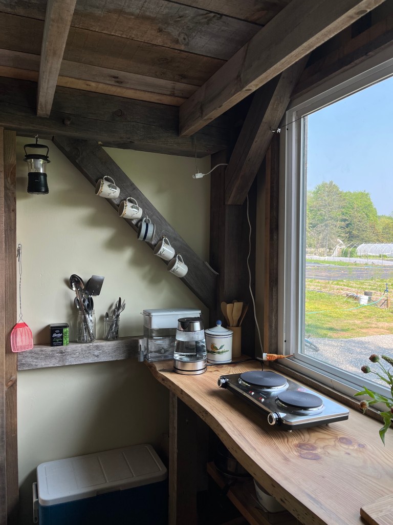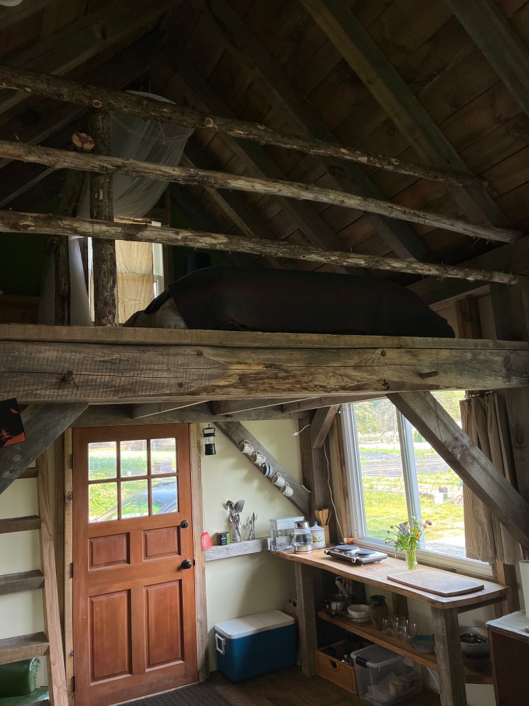 Tucked at the back of a small certified organic veg & flower farm in Lebanon, Connecticut is Sweet Acre Studio. With pine harvested from the property, this timber framed structure seems to grow out of the ground. In front: sweeping views of the vegetable field, orchard, and pasture. In back: 1,500 acres of CT state woods, Bartlett Brook, and walking trails. Tap into the best of organic agriculture or escape into the forest. This stay is ideal for artists and writers looking to get inspired and unplug.